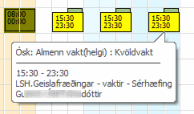 Vaktasmiðir geta skoðað vaktaóskir starfsmanna. Starfsmaður getur einnig skoðað sínar vaktaóskir í sjálfsþjónustu.