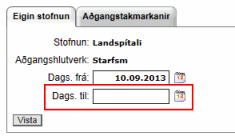Þá opnast skráningargluggi þar sem sett er inn Dags.til ef loka á aðgangshlutverki.