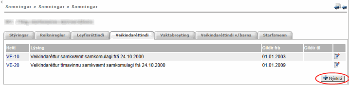 Þar er smellt á flipann Veikindaréttindi og smellt á Nýskrá hnappinn.