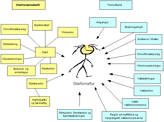 Á myndinni hér fyrir neðan er sýnt í hvoru kerfinu helstu upplýsingar starfsmanns eru skráðar.