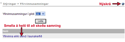 Fara í ábyrgðasvið Stýringar, aðgerðina Yfirvinnusamningar. Velja yfirvinnusamning til að vinna með eða smella á plúsinn efst í hægra horninu til að nýskrá samning.